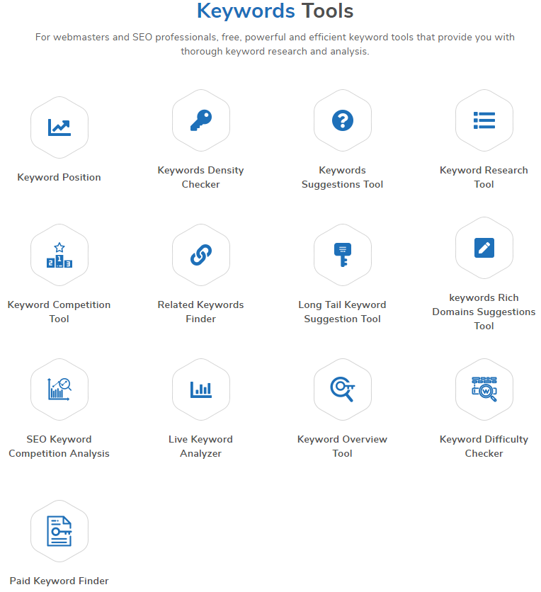 Similarly, for SEO you have tools to check the keyword density in text, a keyword analyzer, and a keyword finder. You can run a backlink analysis for your domain and find places to improve the website’s crawlability. You can also do a competitor analysis for the keywords and backlinks. There are a host of tools for website tracking and management on this website.